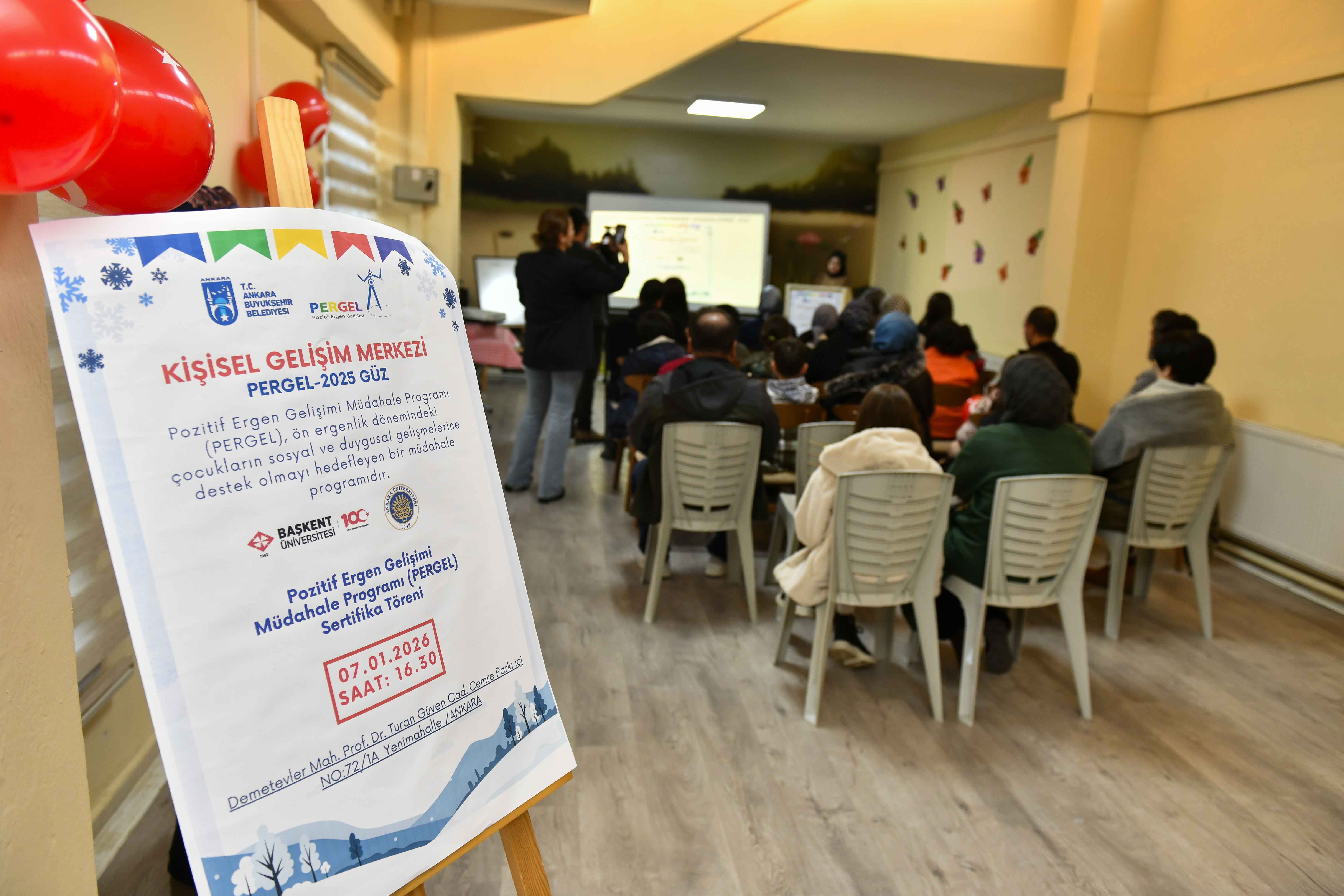Ankara Büyükşehir Belediyesi (ABB), ön ergenlik dönemindeki çocukların sosyal ve duygusal gelişimlerine destek olmak amacıyla beşinci kez hayata geçirdiği Pozitif Ergen Gelişimi Müdahale Programı’nın (PERGEL) 2025 Güz Dönemi’ni tamamladı.