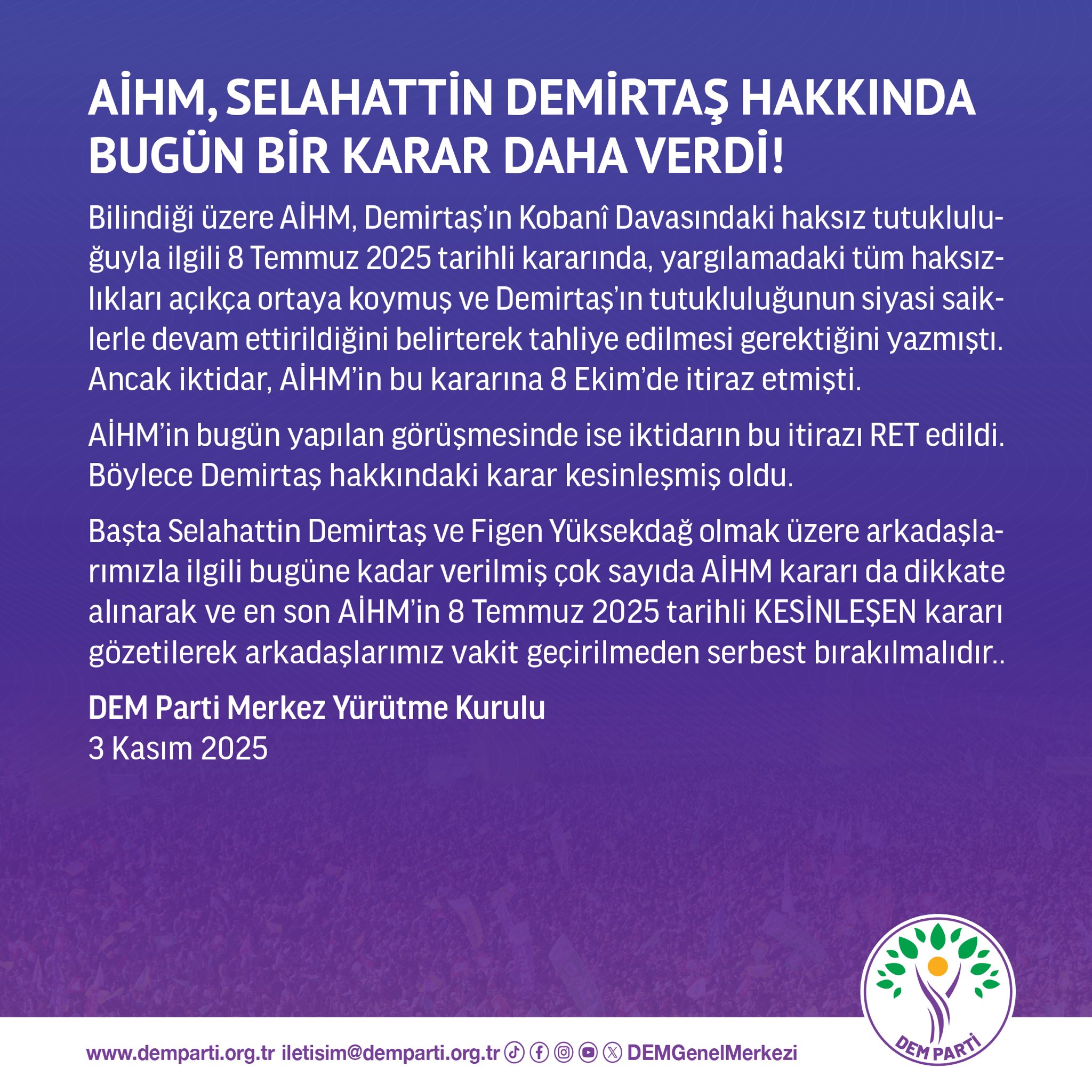 Böylece AİHM’in Selahattin Demirtaş hakkındaki hak ihlali kararı kesinleşmiş oldu.