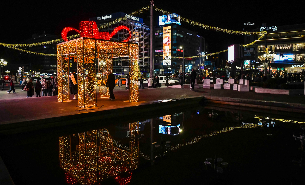Başkentlilerin yeni yılı ışıl ışıl karşılaması için harekete geçen Ankara Büyükşehir Belediyesi, Kızılay Meydanı’nı süsledi.