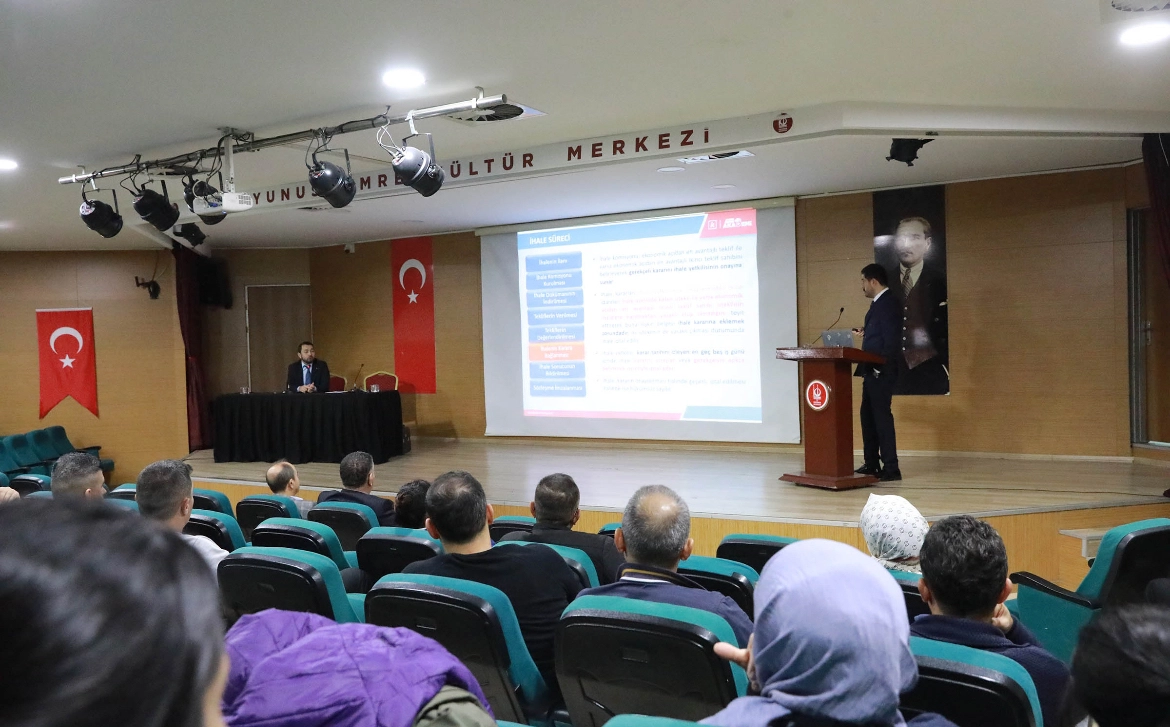 Yunus Emre Kültür Merkezi’nde gerçekleştirilen iki günlük programda, personel 4734 Sayılı Kamu İhale Kanunu, 4735 Sayılı Kamu İhale Sözleşmeleri Kanunu ile Elektronik İhale ve Kamu Alımlarının Elektronik Ortamda Yapılmasına İlişkin Uygulama Yönetmeliği hakkında bilgilendirildi. Eğitimde kamu kaynaklarının etkin, verimli ve şeffaf biçimde kullanılması için dikkat edilmesi gereken temel ilkeler ayrıntılı olarak ele alındı.