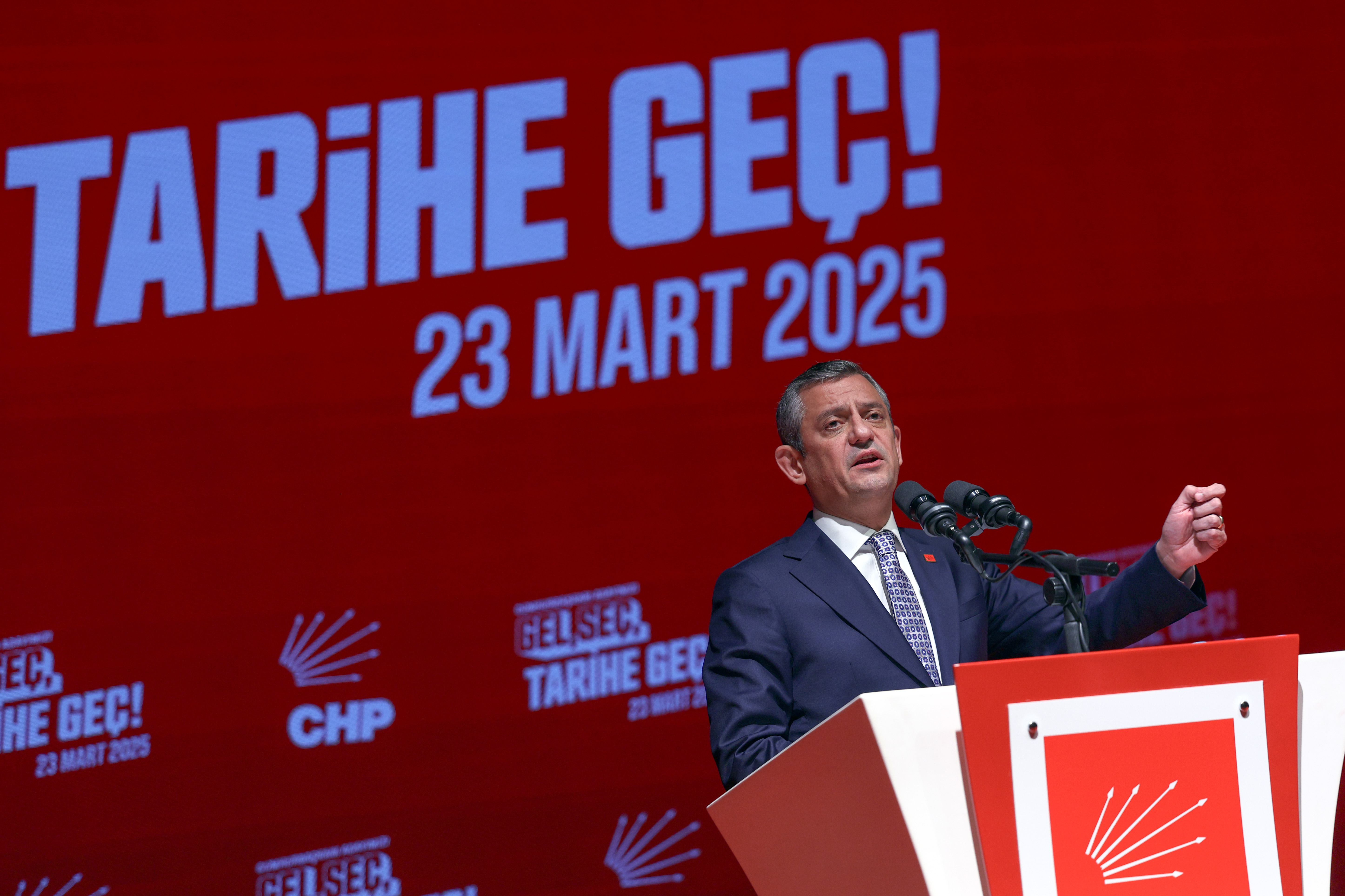 O yüzden bu salon gibi Türkiye’de kampanyayı başlattığımızda 1,5 milyondu, şimdi 1 milyon 600 bin hedefine ulaştığımız bütün üyelerimiz ayaktadır. Önümüzdeki 23 Mart günü hep beraber erkenden kalkacak, sandıklara koşacak, tarihte görülmemiş ilk kez yapılan Cumhurbaşkanlığı ön seçimini, yani ülkeyi yönetecek kişiyi bugünkü Anayasaya göre belirlemek üzere ön seçime koşacak milyonlar, bütün Türkiye’ye umut olacak. Umuda, bütün korkuların kırılmasına, umudun yeşermesine o gün hep birlikte sahip çıkacaklardır. O gün oyları ile arkalarında duracakları ve o gün cisimleşecek olan Cumhurbaşkanı adayımız, biraz önce ifade ettiği şekliyle görevi, Atatürk’ün emanetine sahip çıkmak için hepimizde olan vazifeyi, hepimiz adına yapacak kişidir. Bundan sonra ona saldırmak, onu engellemeye çalışmak, onu siyasetten men etmek, hapsetmek… Bunları engellemek artık Cumhuriyet Halk Partisi’nin, bu ülkenin kurucu partisinin milyonlarca üyesinin on milyonlarca bu memleketin evladı adına üstlenecekleri bir sorumluluk, verecekleri görevdir. Arkasında duracak da gelecek dönemde Cumhuriyet’in ikinci yüzyılında yapılacak ilk seçimde Gazi’nin koltuğunu devralacak bir Cumhuriyet Halk Partilidir.